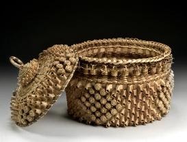 Source: "Mary Kawennatakie Adams," Smithsonian American Art Museum. Retrieved 6/5/2019, https://americanart.si.edu/artist/mary-adams-26 Photo: Mary Kawennatakie Adams, Basket, 1985, sweetgrass. Courtesy, Smithsonian American Art Museum, Gift of Herbert Waide Hemphill, Jr. and museum purchase made possible by Ralph Cross Johnson, 1986.65.67A-B. Retrieved 5/21/2020, https://americanart.si.edu/artwork/basket-31571.
