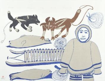 Source: “Pingwartok, Ulayu,” Canadian Women Artists History Initiative. Retrieved 1/26/2020, http://cwahi.concordia.ca/sources/artists/displayArtist.php?ID_artist=63 Drawing: Pingwartok, Ulayu, 1977. “ASIVAQTI (Man Hunting). Reproduced with the permission of Dorset Fine Arts.
