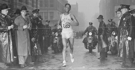 Born September 12, 1913, in Porter Hill, Rhode Island (RI), Brown left school after 7th grade. His tribal name meant “Deerfoot.” His nickname, “Tarzan,” was due to his athletic build and love of climbing and swinging from tree branches. In the 1936 Boston Marathon, Brown set a blistering pace at the start and shed his only threat, John A. Kelly, on a Newton hill, now-known as “Heartbreak Hill” because Tarzan “broke Kelley’s heart” there. On the 1936 U.S. Olympic team, he was in the top 5 in the marathon, but was disqualified when a bystander helped him with his leg cramps. On October 11, Brown won the Port Chester, New York, Marathon and, the next day, the New England Marathon Championship. In the 1939 Boston Marathon, he was the 1st runner to break the 2:30 mark on the post-1926 course. Brown qualified for the 1940 U.S. Olympic team but the games were canceled. A noted stonemason & skilled shellfisherman, he was inducted into the American Indian Hall of Fame. Brown died in Westerly, RI.