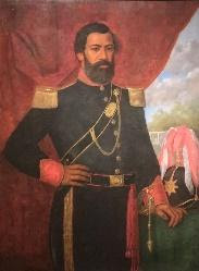 Sources: "Another Chief Dead," The Pacific Commercial Advertiser. Honolulu. October 8, 1864. p. 2. Retrieved 7/20/2020, https://chroniclingamerica.loc.gov/lccn/sn82015418/1864-10-08/ed-1/seq-2/ Wikipedia Painting: Enoch Wood Perry, Jr. (1831-1915), circa 1864. Public Domain. Source: Hawaii State Archives.