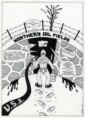Sources: “Alootook Ipellie,” Strong Nations. Retrieved 4/21/2021, Alootook Ipellie (Authors) - Strong Nations Michael P. J. Kennedy, “Southern Exposure: Belated Recognition Of A Significant Inuk Writer-Artist,” retrieved 4/21/2021, http://www3.brandonu.ca/cjns/15.2/kennedy.pdf Wayback Machine (archive.org) Cartoon: Alootook Ipellie, (Canadian Inuit, 1951-2007), n.d. Northern Oil Fields, n.d., Pen and ink on paper (SLU 2001.19). Image provided by the Richard F. Brush Art Gallery at St. Lawrence University (Canton, NY, USA) with permission to publish from Taina Ipellie.