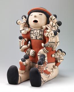 Sources: “Helen Cordero, NEA National Heritage Fellowships. Retrieved 1/11/2022, https://www.arts.gov/honors/heritage/fellows/helen-cordero Wikipedia Photo: Helen Cordero, circa 1985. Storyteller with Twenty Figure. Fired clay with slip and beeweed. Smithsonian American Art Museum, Gift of Chuck and Jan Rosenak and museum purchase made possible by Mrs. Gibson Fahnestock, 1997.124.148. Courtesy of Smithsonian American Art Museum