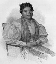 Kekāuluohi, also known as Kaʻahumanu III, was daughter of High Chief Kalaʻimamahu (half-brother of Kamehameha I) & Kalākua Kaheiheimālie of Maui (also a wife of Kamehameha I). Kekāuluohi means “the vigorously growing vine.” In 1809, she became Kamehameha I’s youngest wife. After the king died in 1819, she married her cousin Liholiho (Kamehameha II) who, in 1821, gave her to his friend Charles Kanaʻina in marriage. In 1839, she succeeded half-sister, Kīnaʻu (Kaahumanu II), as Kuhina Nui (co-ruler) with Kamehameha III and signed, with the king, all official documents, conducted all Crown business, oversaw government lands, and served as special Councilor to the king with exclusive veto power over his decisions. Together they signed the first constitution of the Kingdom in 1840. She served in the House of Nobles from its founding. Kekāuluohi, lived in a grass-hut with many chiefs in attendance on her. Her 2nd son, William, became King Lunalilo in 1873. She died in Honolulu, June 7, 1845.