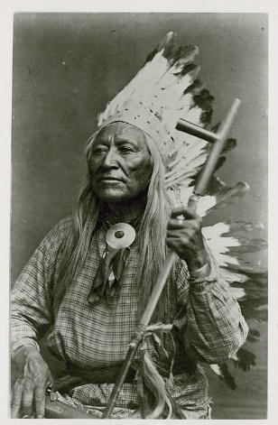Photo: Baker and Johnson, pre-1900. Washakie, a Shoshoni chief holding a catlinite pipe. Public Domain. Source: National Anthropological Archives, Smithsonian Institution, SPC Basin Shoshoni BAE 4423 #35-40 00869600