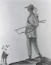 Source: Laurence M. Hauptman, “The Road to Kingsbridge: Daniel Nimham and the Stockbridge Indian Company in the American Revolution,” American Indian Magazine, Fall 2017. Retrieved 7/11/2019, https://www.americanindianmagazine.org/story/road-kingsbridge-daniel-nimham-and-stockbridge-indian-company-american-revolution Drawing: Johann von Ewald (1744-1813), 1778. Member of the Stockbridge Militia. Public Domain in U.S.: Pre 1/1/1925. Public Domain elsewhere where copyright term is author’s life plus 100 years or less.