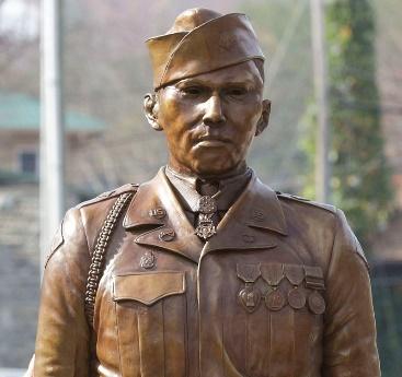 Sources: Korean War Medal of Honor Recipients. Retrieved 2/20/2022, Medal of Honor Recipients - Korean War (archive.org) "Boys Return War Medals to Medal of Honor Winner's Family," ABC News. Retrieved 2/20/2022, "Boys Return War Medals to Medal of Honor Winner's Family". Wikipedia Photo: Packersfan1491, 11/11/2016. Statue of Charles George, Cherokee Veterans Park, Cherokee, NC. Permissive Use.