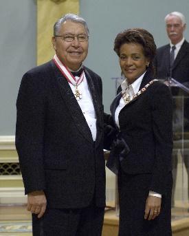 Sources: “Joseph Gosnell,” Making History. Retrieved 11/24/2021, http://www.kermode.net/nisgaa/gosbio.html Wikipedia Photo: Government of Canada (Governor General), 2006. Permissive Use. Source: Joe Gosnell with former Governor General Michaelle Jean in 2006 upon becoming companion of the Order of Canada. Office of Governor General, Joseph A. Gosnell, C.C. | The Governor General of Canada (gg.ca)